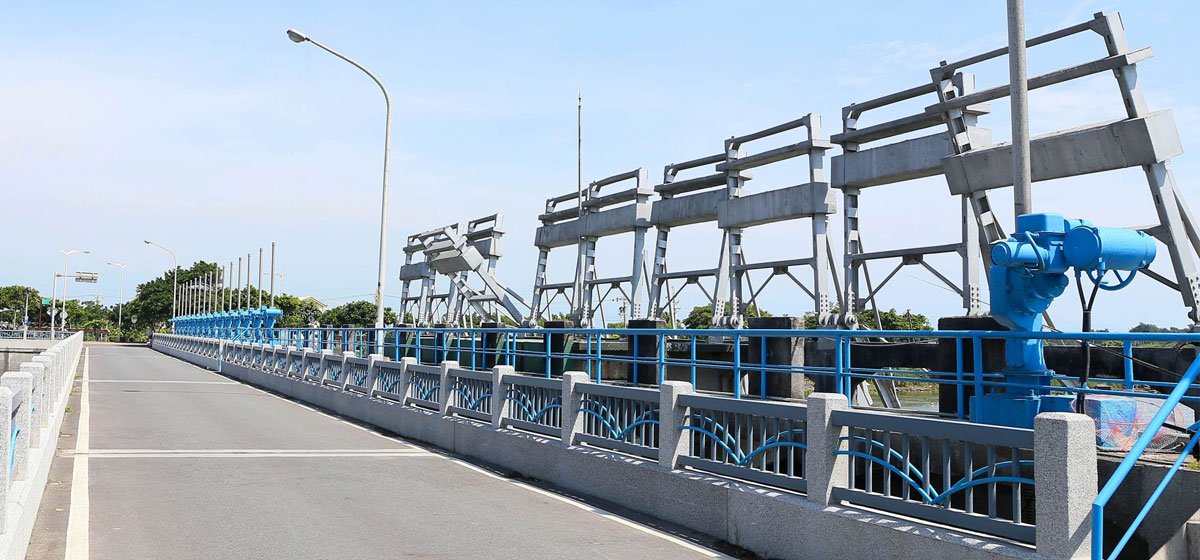 液压式景观钢坝、拦河坝、合页坝、橡胶坝、液压坝、底轴式钢坝。颜色···
